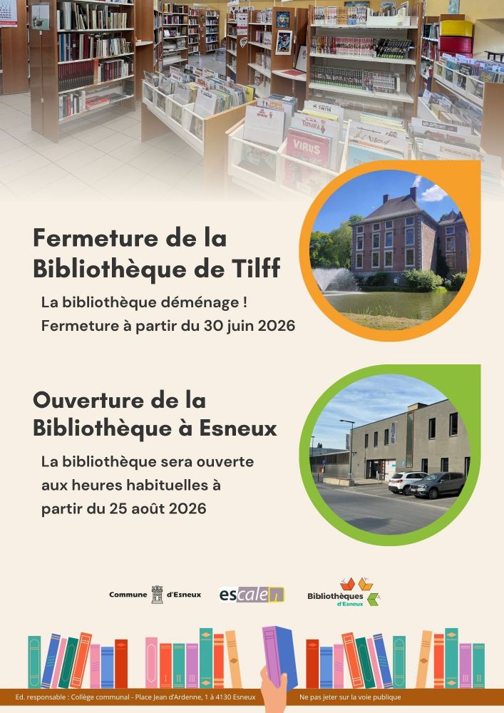 La bibliothèque d'Esneux-Tilff, installée actuellement dans le Château du Domaine Brunsode à Tilff, déménagera cet été !
