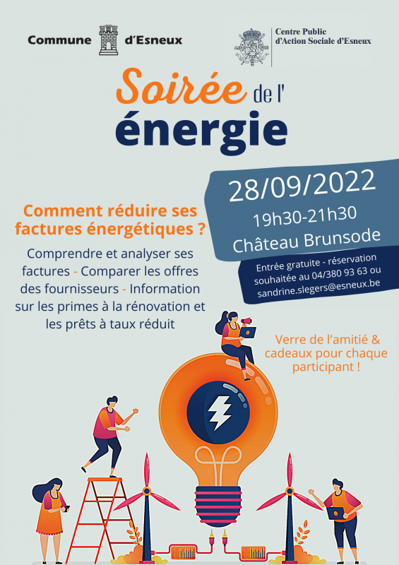 Une soirée de l’énergie est organisée en collaboration avec le CPAS, le 28 septembre de 19h30 à 21h30 au château Brunsode.