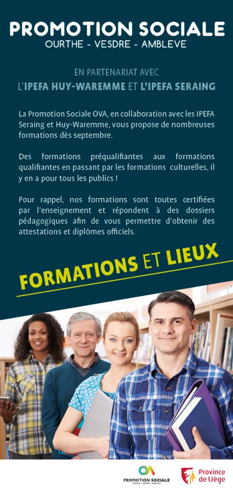 La Promotion Sociale OVA vous propose de nombreuses formations certifiées.